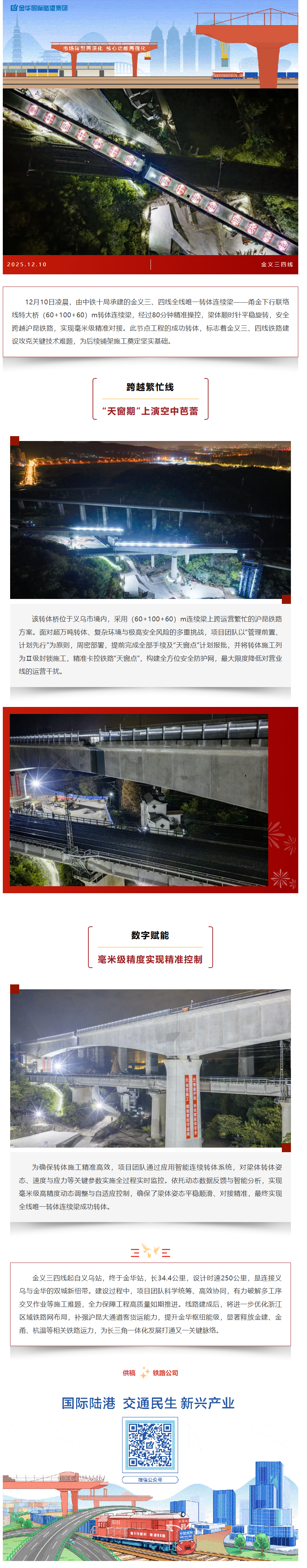 華麗轉(zhuǎn)身!金義三四線全線唯一轉(zhuǎn)體連續(xù)梁成功轉(zhuǎn)體