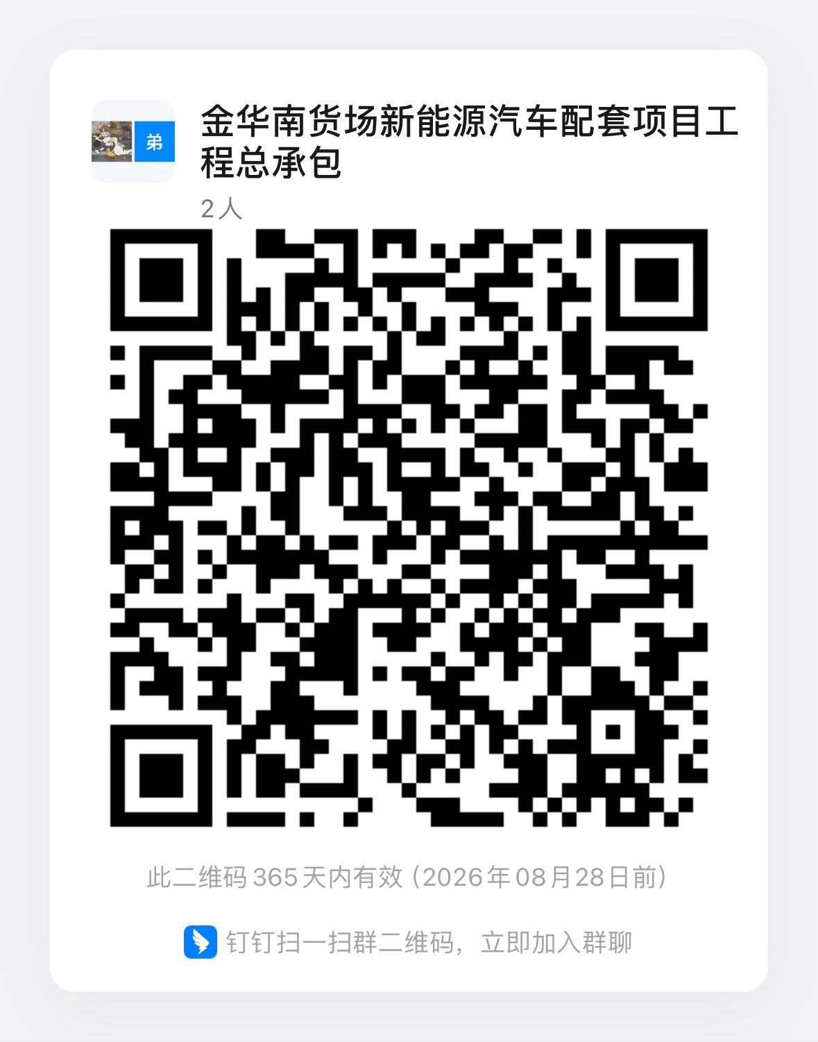 5.7開標時間前30分鐘,投標人應使用釘釘軟件掃描下方二維碼進入開標直播群,開標全過程將在釘釘群中進行直播?!敖鹑A南貨場新能源汽車配套項目工程總承包”群的二維碼如下: